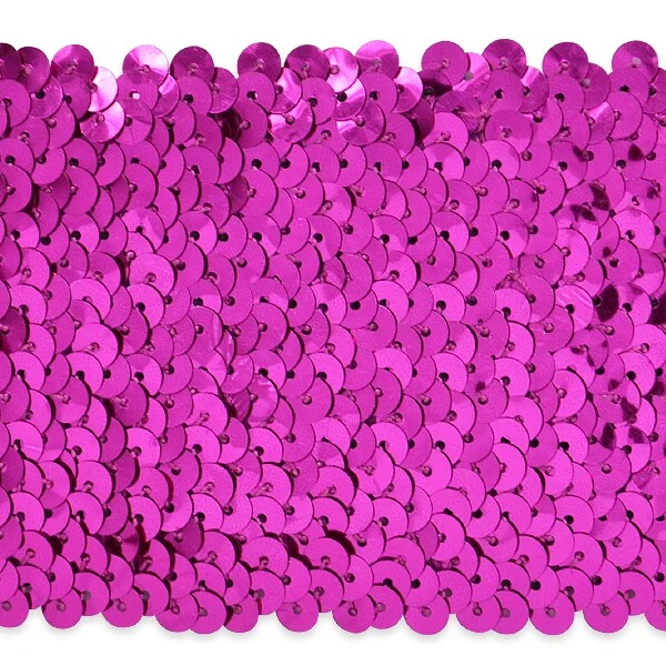The 8 row stretch sequin trim measures approximately 2 3/4″ in width from top of sequins the bottom of the sequin row sequin side.