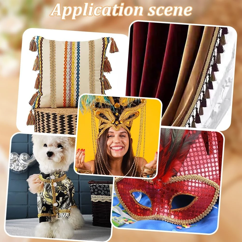 Easy to Use: inspire your creation effortlessly, the gold trim can be cutted to any length you want and then stitched or hot glued on. You can melt the end to avid fraying, the gold rope widely used for costume and upholstery embellishment. Nice added decoration.