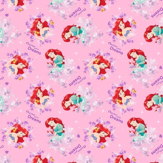 This soft cotton fabric featuring Disney’s Princess Ariel is great for quilting, crafting, and other sewing projects.