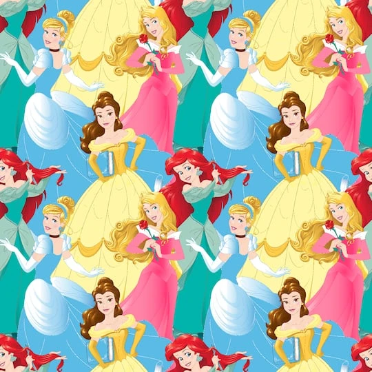 Craft, knit and quilt wonderful things with this colorful Disney Princess Fleece Fabric.